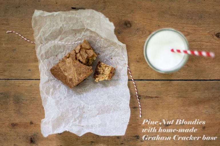 My husband Tristan spotted this recipe for pine nut blondies ages ago on the fantastic food site serious eats. We both love a blondie, but because other priorities are always so demanding it took me a long time to get around to making them for him, and then again, even longer to share the recipe with you guys!