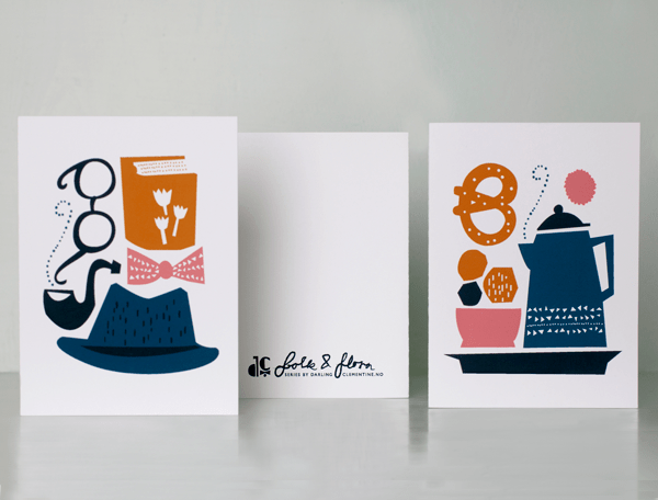 I’ve been a huge admirer of Darling Clementine for ages and have shared their work before here. These cards come from their folk & flora set, which is available from their online shop, and I really like them because the pretzel reminds me of the signs you see in mainland Europe outside bakeries.