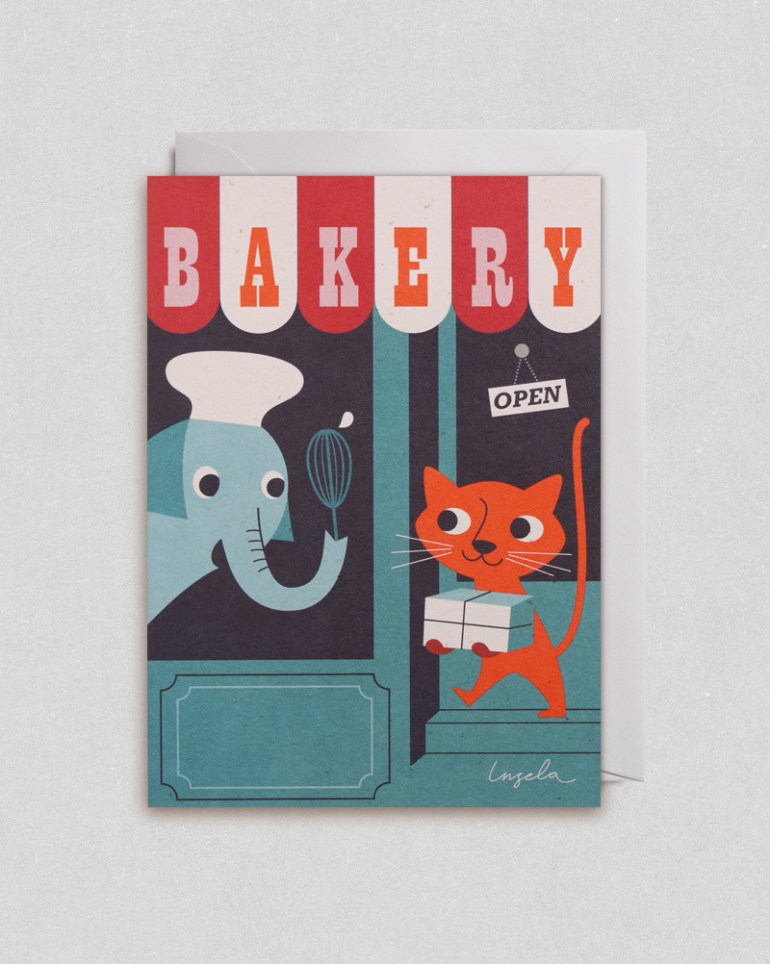 Today’s illustration for inspiration comes via Swedish children’s book artist, Ingela P Arrhenius and her charming ‘Bakery’ card.