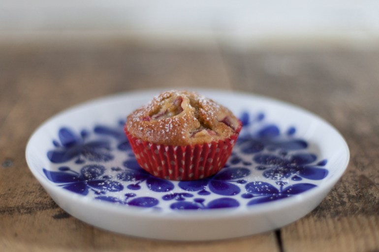 So while perusing away on the Eatsy blog I chanced upon a recipe for gluten free rhubarb almond breakfast cakes and was immediately inspired to do a bit of fiddling and concoct my own yummy creation of rhubarb, dense satisfying cakeyness and warming spices. Perhaps better suited to afternoon tea than breakfast (not even I am so decadent as to have cake for my breakfast!), and made with local Norfolk flour, which is what I usually have to hand, these little treats are especially good when still a little warm from the oven and dusted finely with vanilla sugar.