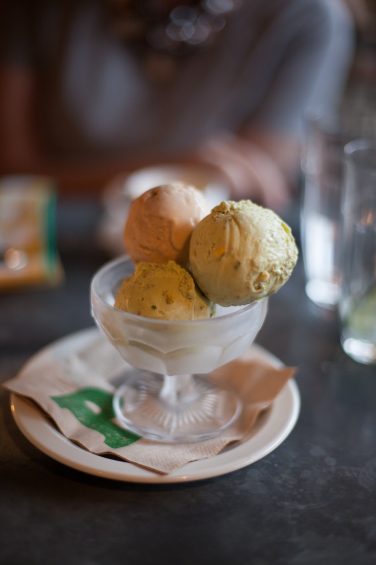 Last weekend I was in London to see my old school friend, Saira, and we ended up sharing some pistachio and hazelnut gelato at the delicious Pizza East in Shoreditch. We also had a smoked mozzarella and roasted aubergine pizza, but I haven’t got any photos of that because we gobbled it up too quickly!
