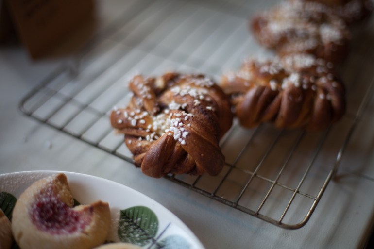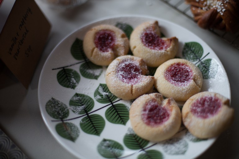 I did my usual number and didn’t give myself a chance to take photos of all the goodies before most were procured and eaten, but thankfully I did manage to get a few snaps before everything was gone. Alongside the buns and cookies that I made were treats (tiny lemon tarts and caramel shortbread pictured) by my awesome friend Jude, who will be launching her own foodie blog soon. Also pictured are cushions by designer Suzanne Antonelli, paper cuts by Su Owen and clothing by Shhhh collective.