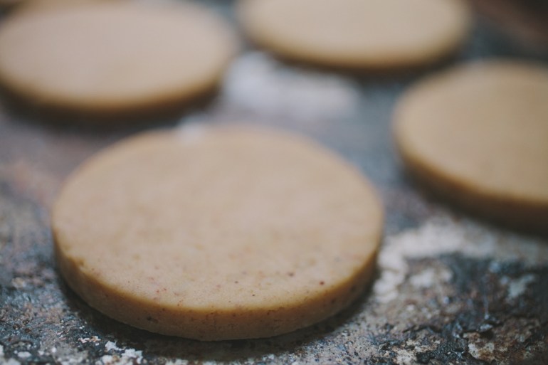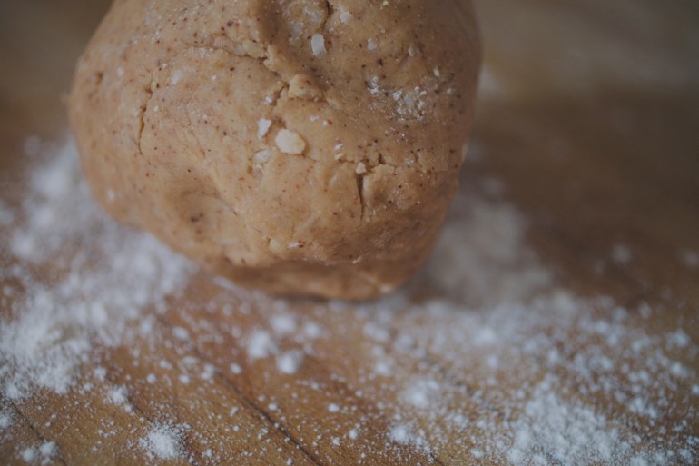 When ready to bake, preheat your oven to 180 degrees centigrade and take the dough back out of the fridge. Roll it, on a floured surface, to a thickness of between 0.5-1cm – somewhere around 7mm is what you’re looking for.