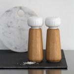 The simple ribbed pattern and colour palette really float my boat, and the wooden pepper and salt mills are super lovely with the juxtaposition between ceramic and wood. Simple they may be but beautiful they also are.
