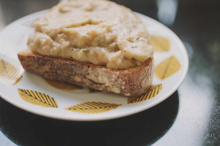 If you’re not in the mood for outdoor grilling, it’s also pretty delicious spread on some freshly baked bread (pictured) or inside a pita with some warm falafels. Bring on the summertime!