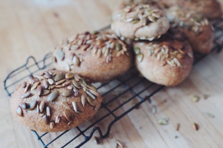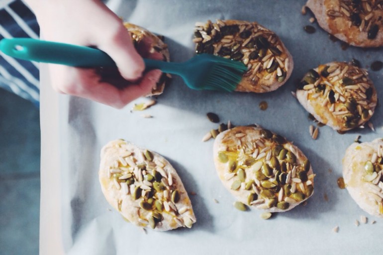 Brush the tops of the buns with a little olive or rapeseed oil and bake them in the oven for approximately 20 minutes.