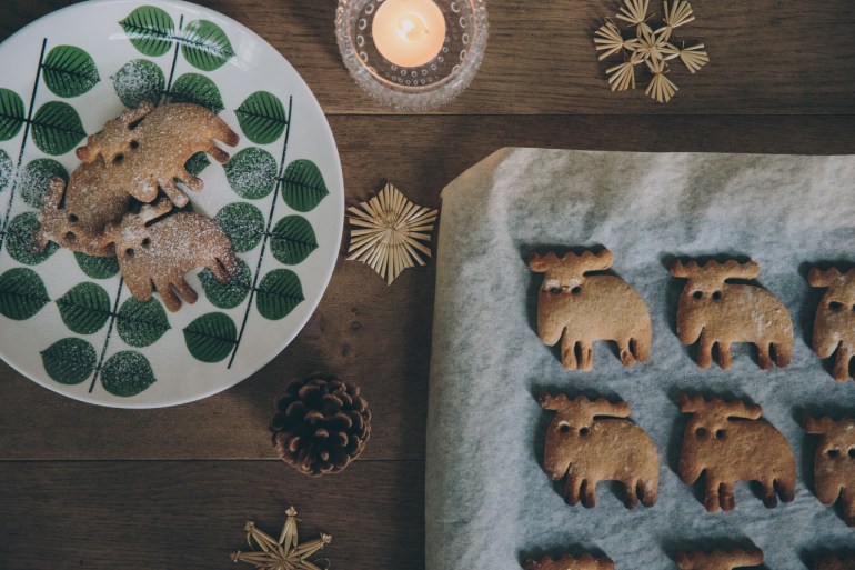 I love these biscuits and can eat a whole trayful if left to my own devices, without even letting them cool down properly from the oven! They’re not hard, like the sort of gingerbread you buy in high-street bakeries in Britain, and have a lot more flavour because of the range of spices included. They are quintessentially very Scandinavian, and normally you can buy them at outdoor Christmas markets, along with a steamy hot mug of glögg, which is the Swedish version of mulled wine. On a cold, snowy Swedish night, it’s just what you need to warm the cockles.